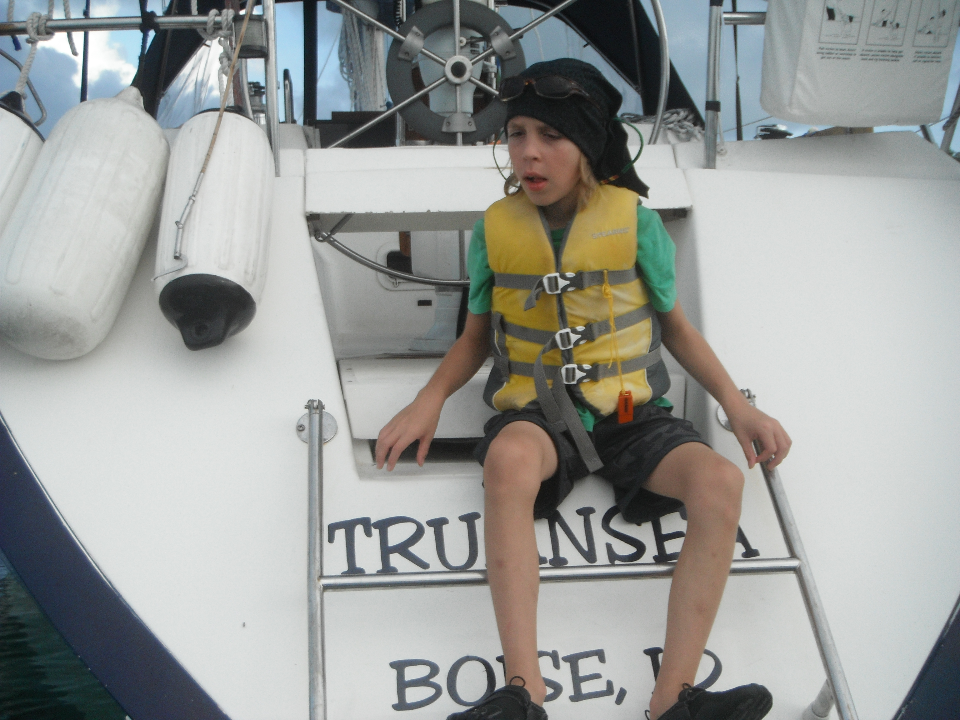 DSCF7643 Published December 8, 2012 at 3072 × 2304 in To Bimini in the Morning by Christine Cold holding the dinghy (Hooky) painter while we are getting ready to go ashore.