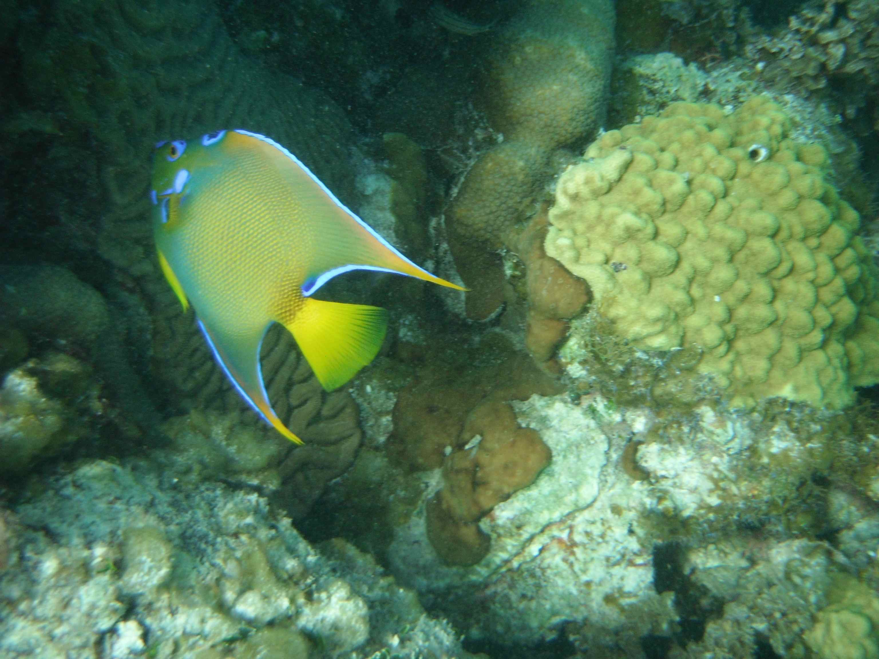 12/19/12 We headed for Norman’s Cay to get protected anchorage from the high winds forecast coming up.  We tried to get into Norman’s Pond, which is very protected, but kept getting stopped by the sandy bottom.  We knew it was a shallow entrance and several people told us we could make it with our draft.  The channels are ever changing and evidently it has filled up enough that 5’ drafts can no longer make it in.  We anchored near the submerged plane wreck and dived it at slack tide.  Beautiful fish, coral life, stingrays and nurse sharks are living in and around the wreck.