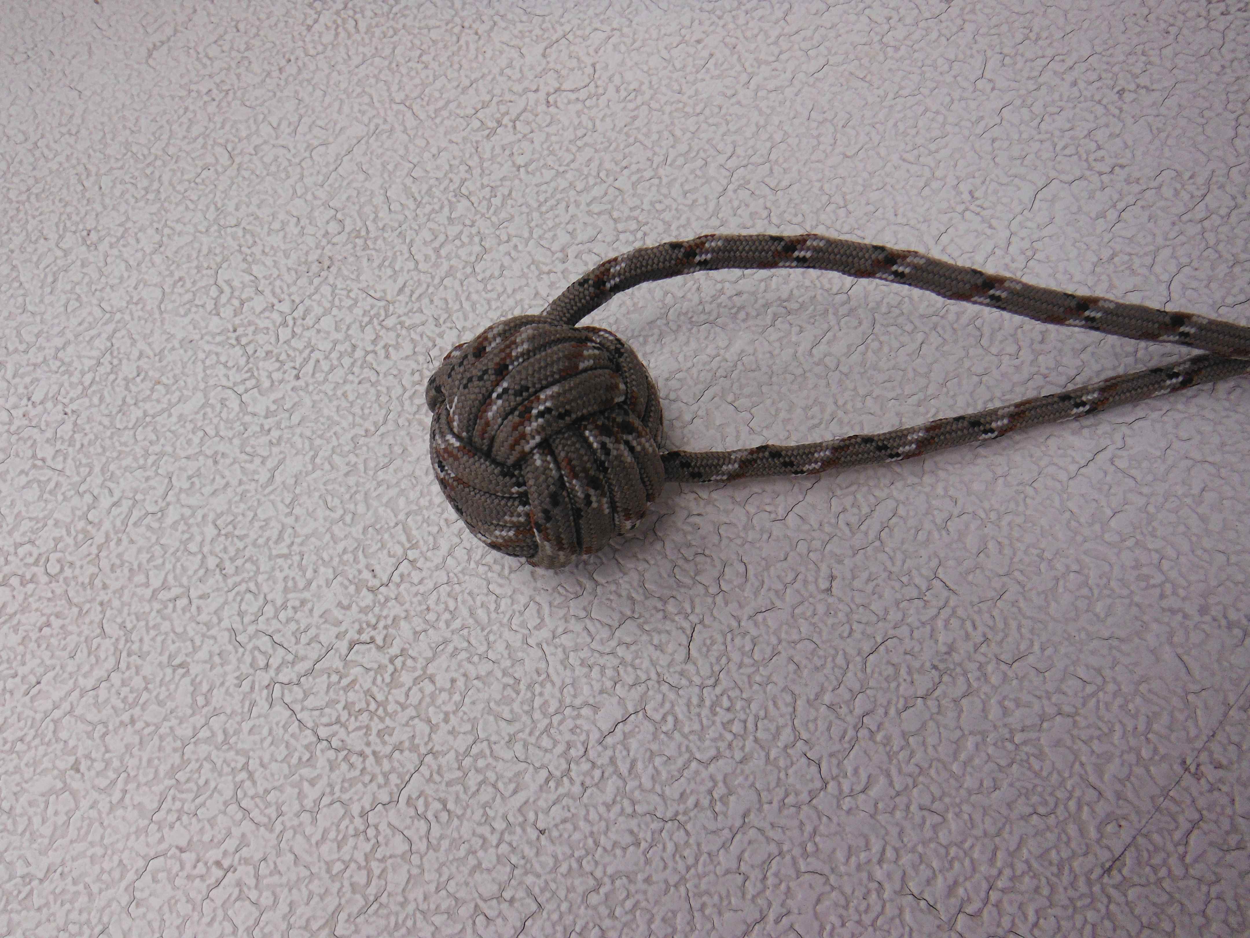 Today I tied a monkey’s fist knot. This is what it looked like.