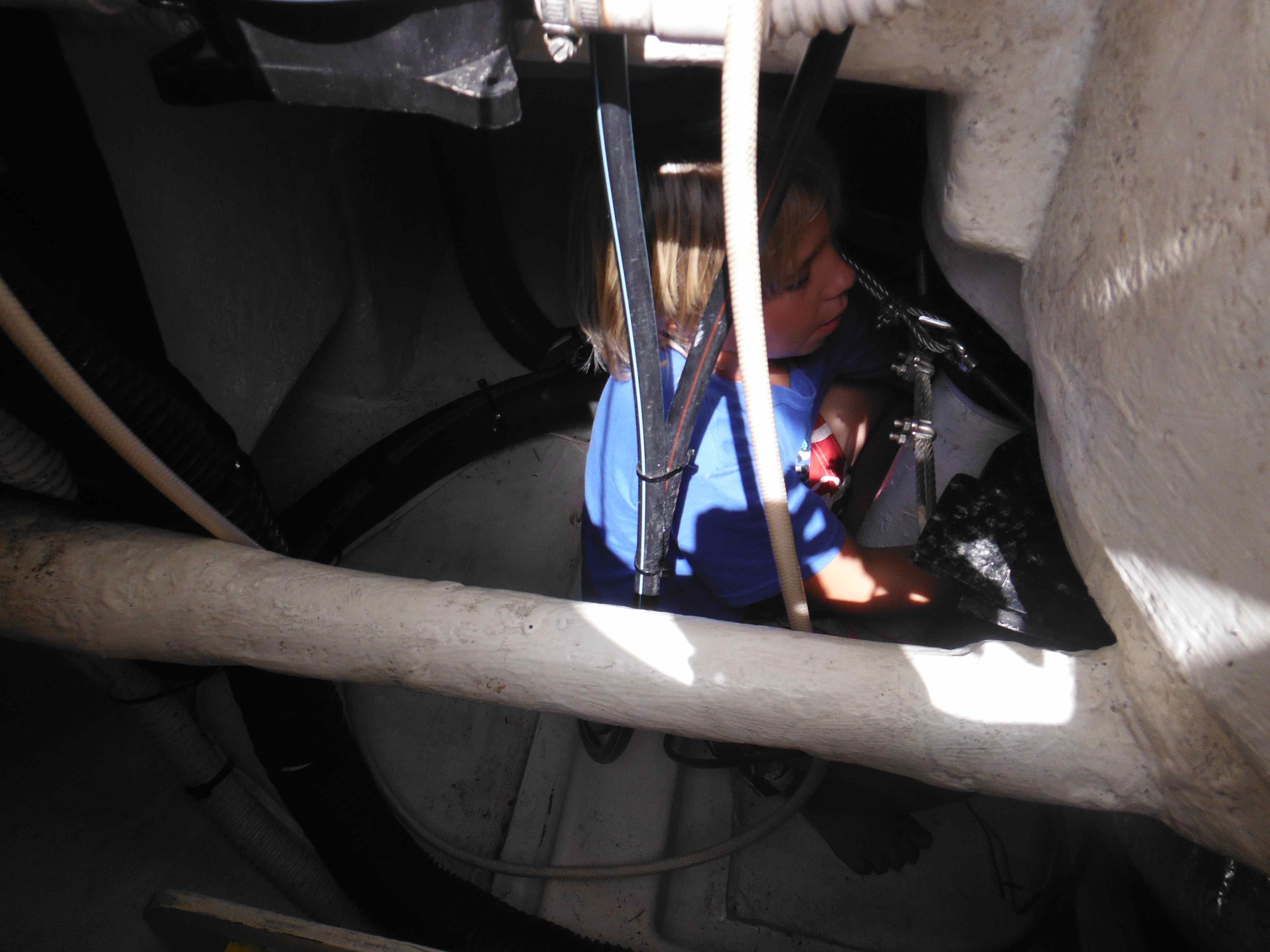 Logan in a lazarette on Commotion. Anyone shorter than 5 feet is a plus for this job.