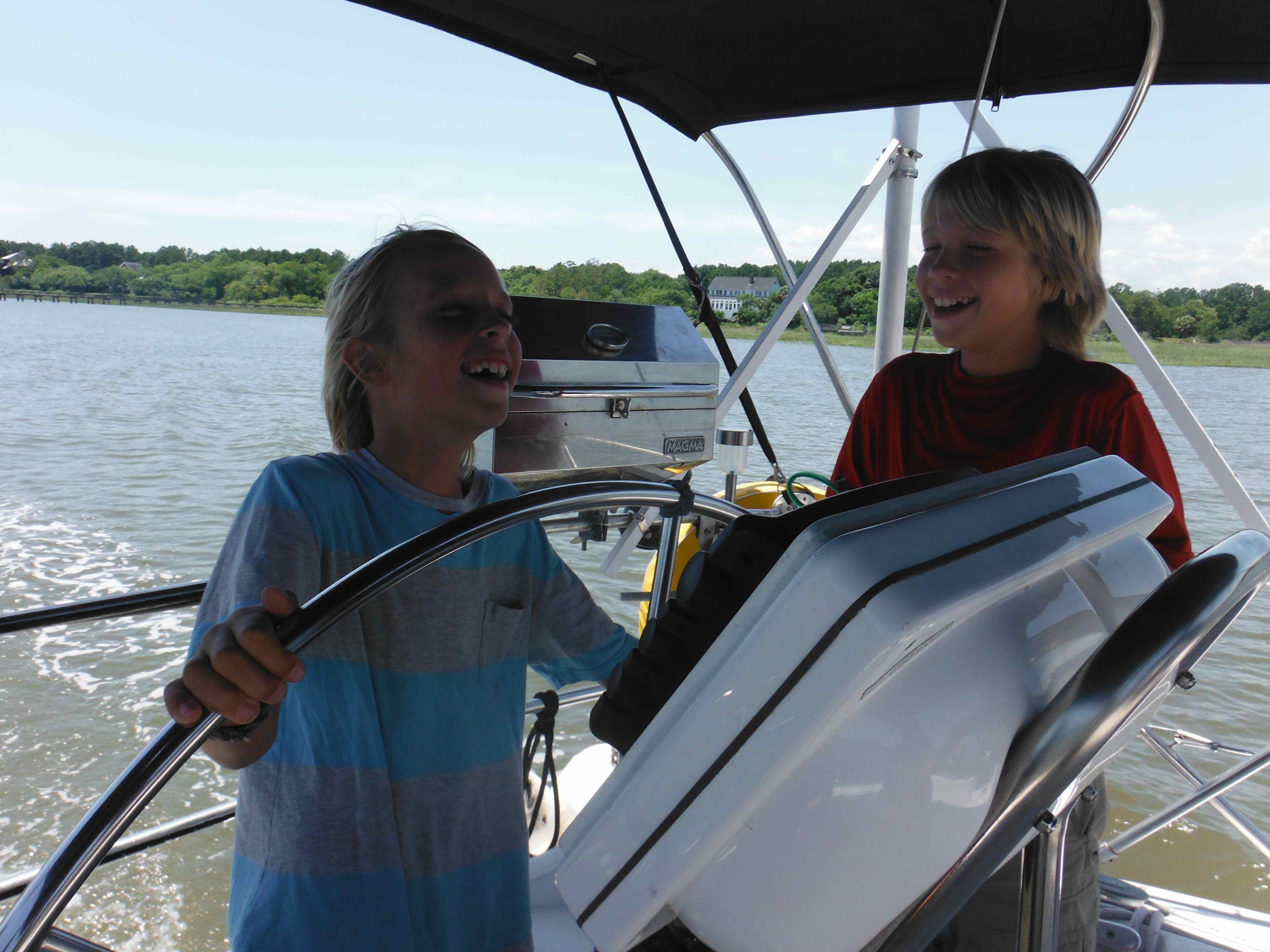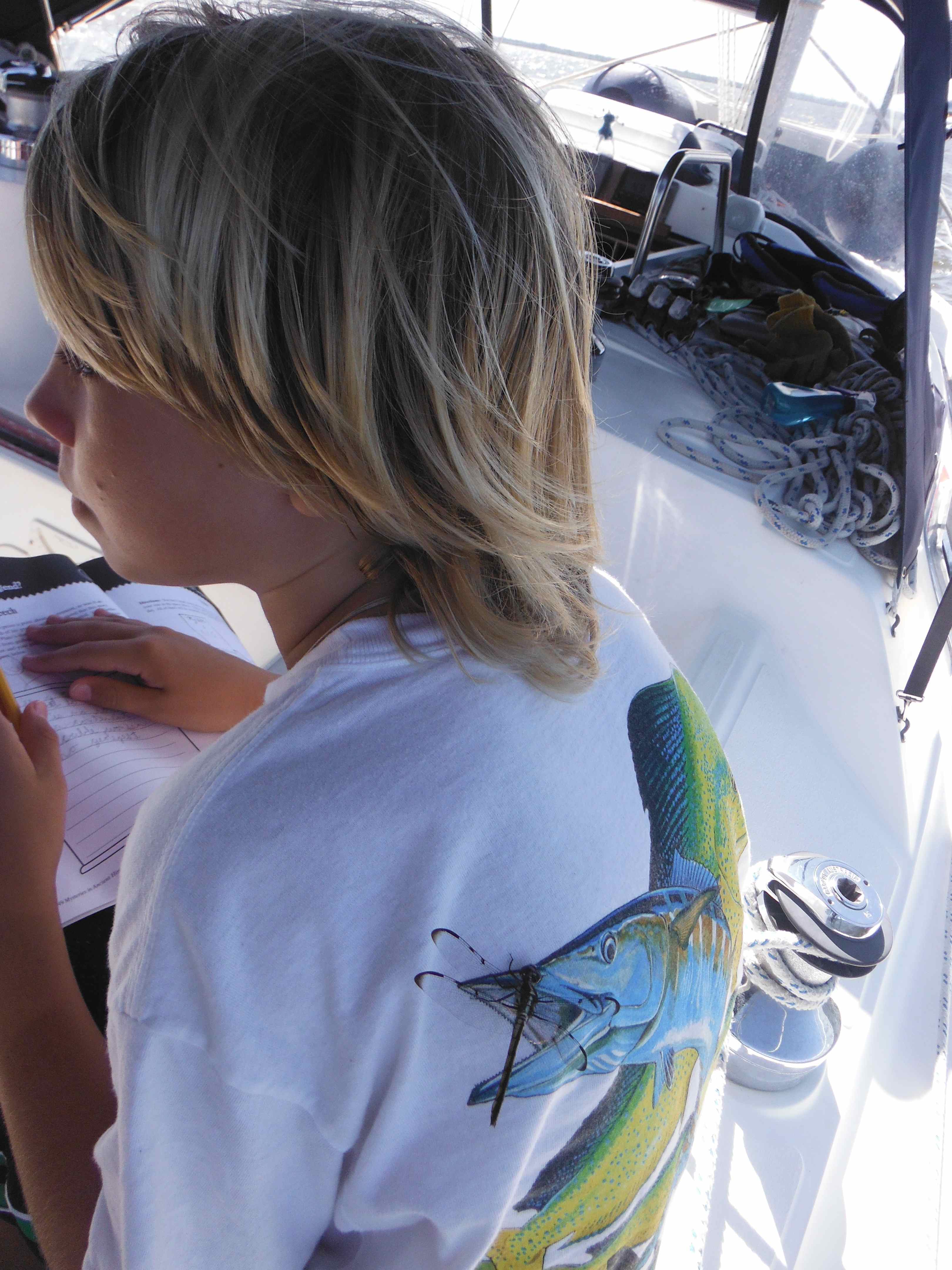Logan was able to catch his first bait fish here with the cast net we had picked up in Brunswick. The boys identify all the fish we catch. They usually know what it is before it is even brought on board since they spend so much time studying the fish identification books.