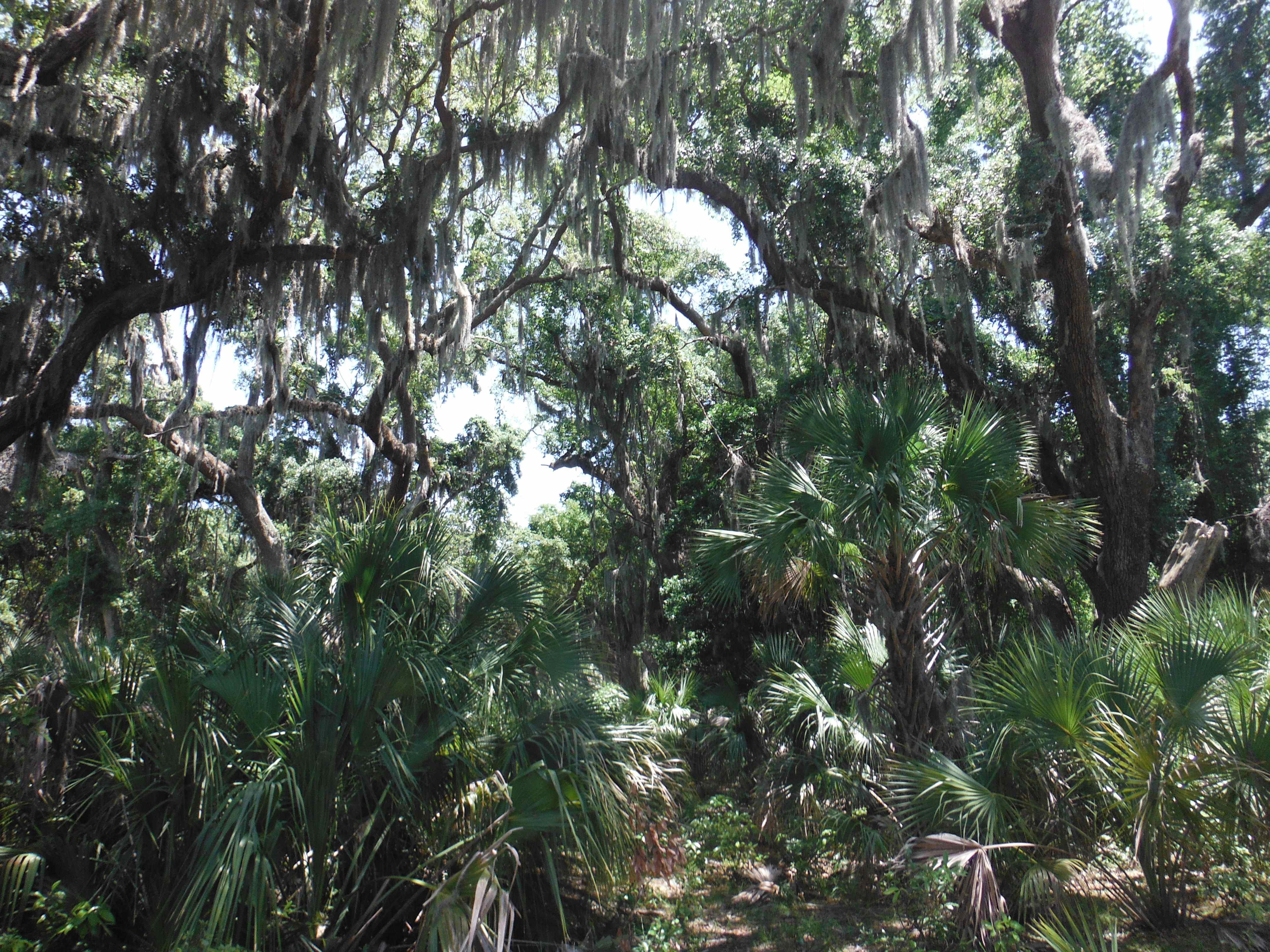 After leaving St. Augustine, we headed north up the ICW to anchor off of Cumberland Island. There is no bridge to the island so the only access is by boat. A ferry stops at the island twice a day to drop off and pick up passengers from St. Mary’s, Georgia. Once you step aboard the island, you feel that you have entered a magical place. The live oaks hang high overhead with twisting and turning branches that are dripping with spanish moss. The forest floor is thick with small palm trees and palm like bushes. The sounds are muted as you walk along the paths through the forest.