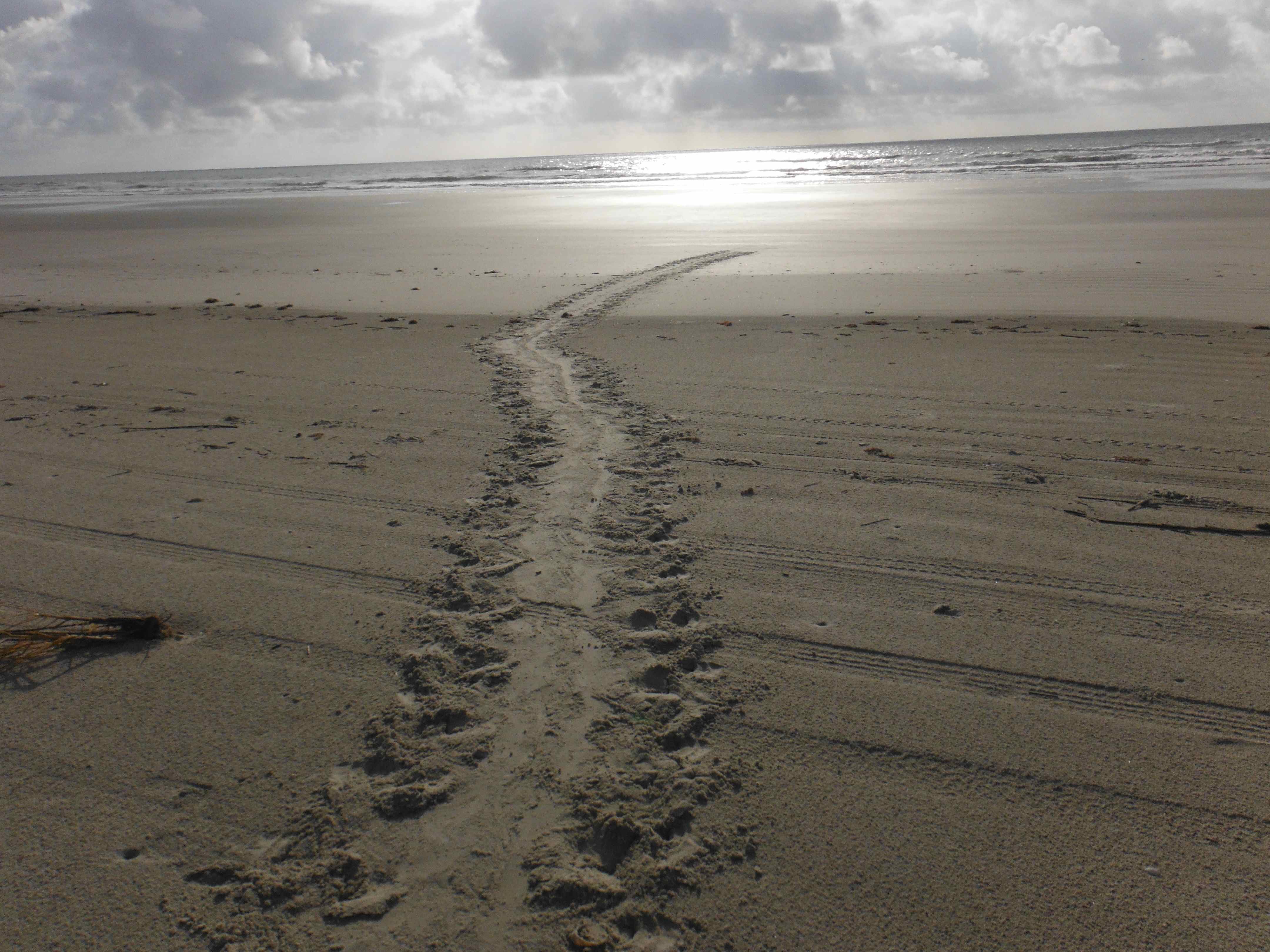 This is the track a loggerhead turtle made that evening returning to the sea after laying her eggs.