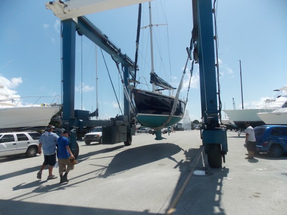 We went to a marina where our boat was getting thru hulls and hoses replaced. They put our boat back in the water, then we went to anchor in Lake Sylvia for the night.