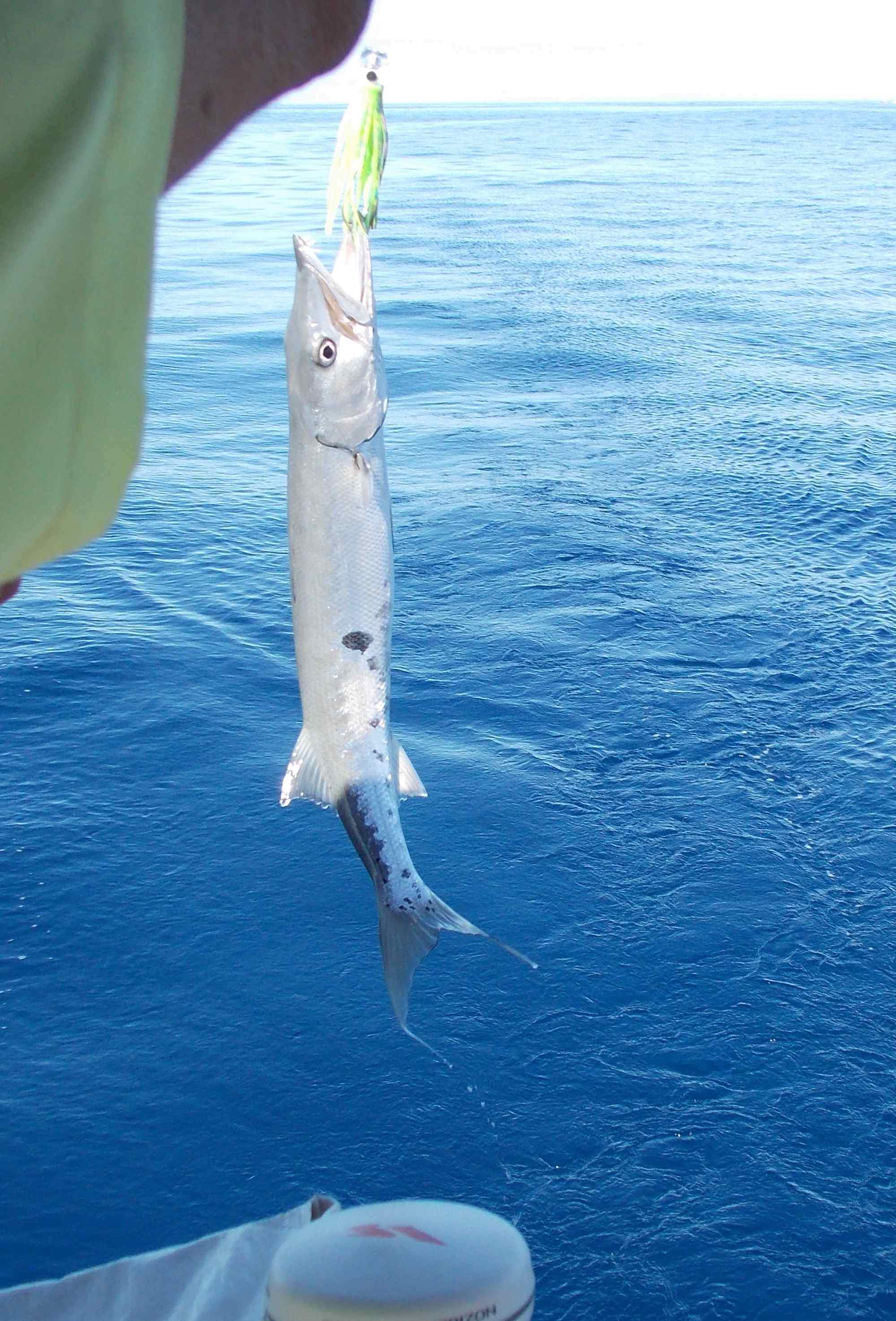 People in the Bahamas have always been saying that we are sure to catch a barracuda and sure enough, we caught one. He was 1 1/2 feet long. You can only catch them in shallow water.
